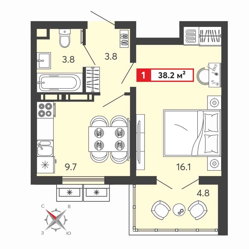 Площадь: 38 м²