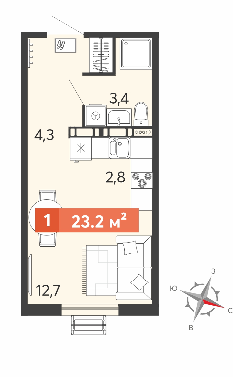 Площадь: 23 м²