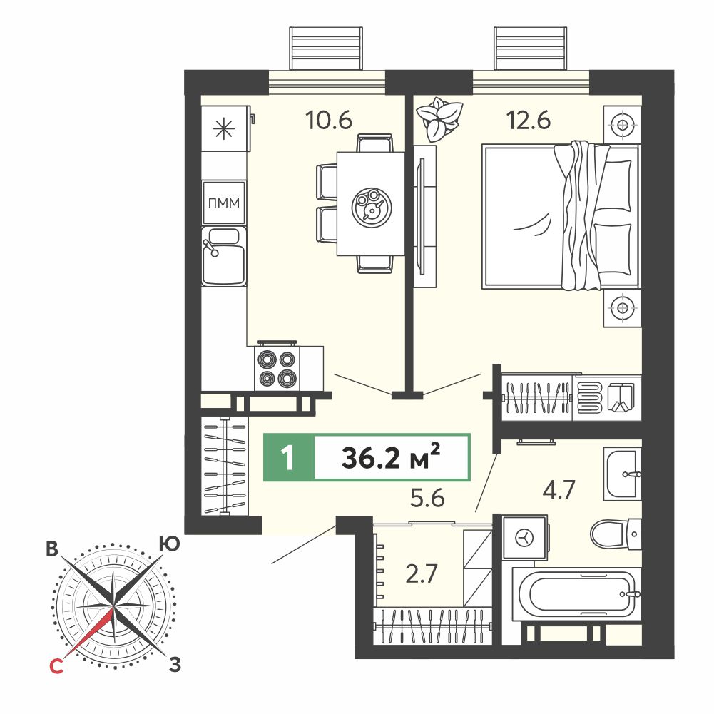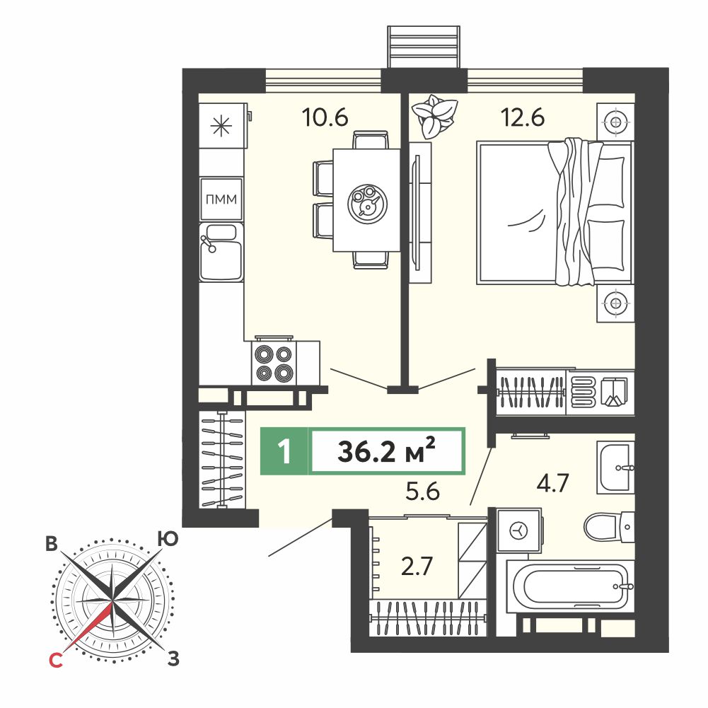 Площадь: 36 м²