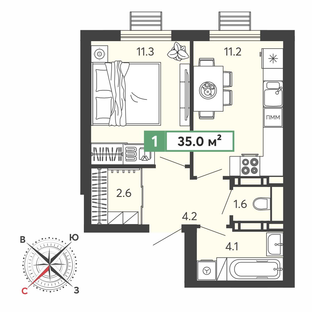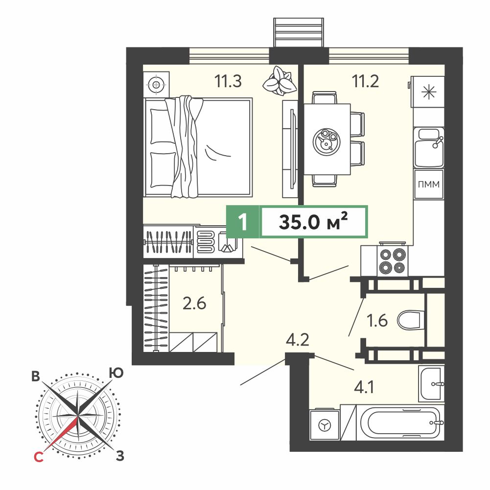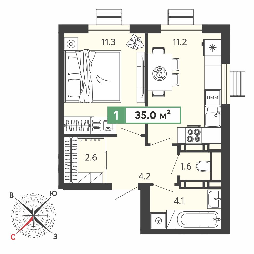 Площадь: 35 м²