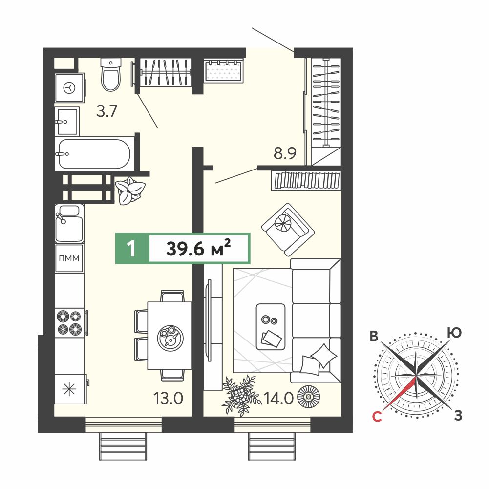 1-комнатная