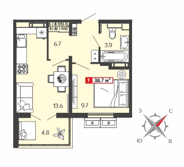 Площадь: 38 м²