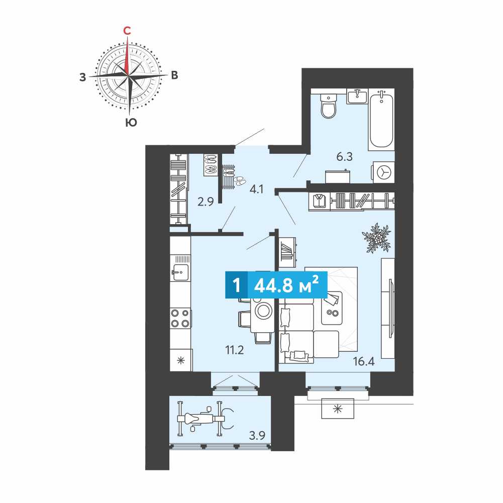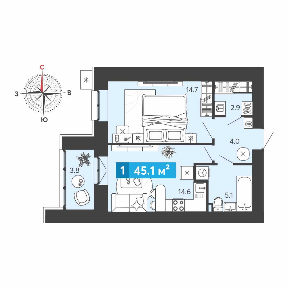 1-комнатная