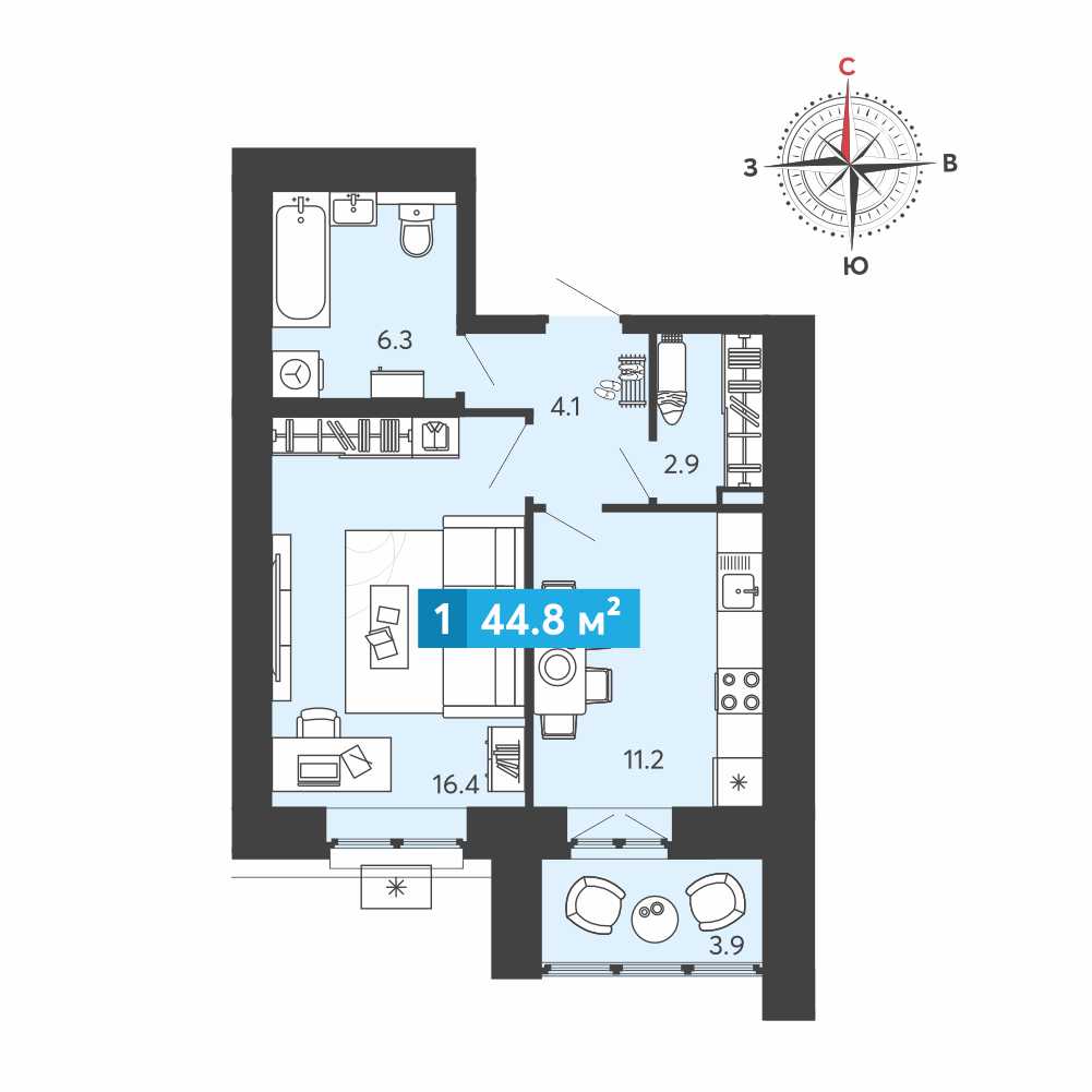 Площадь: 45 м²