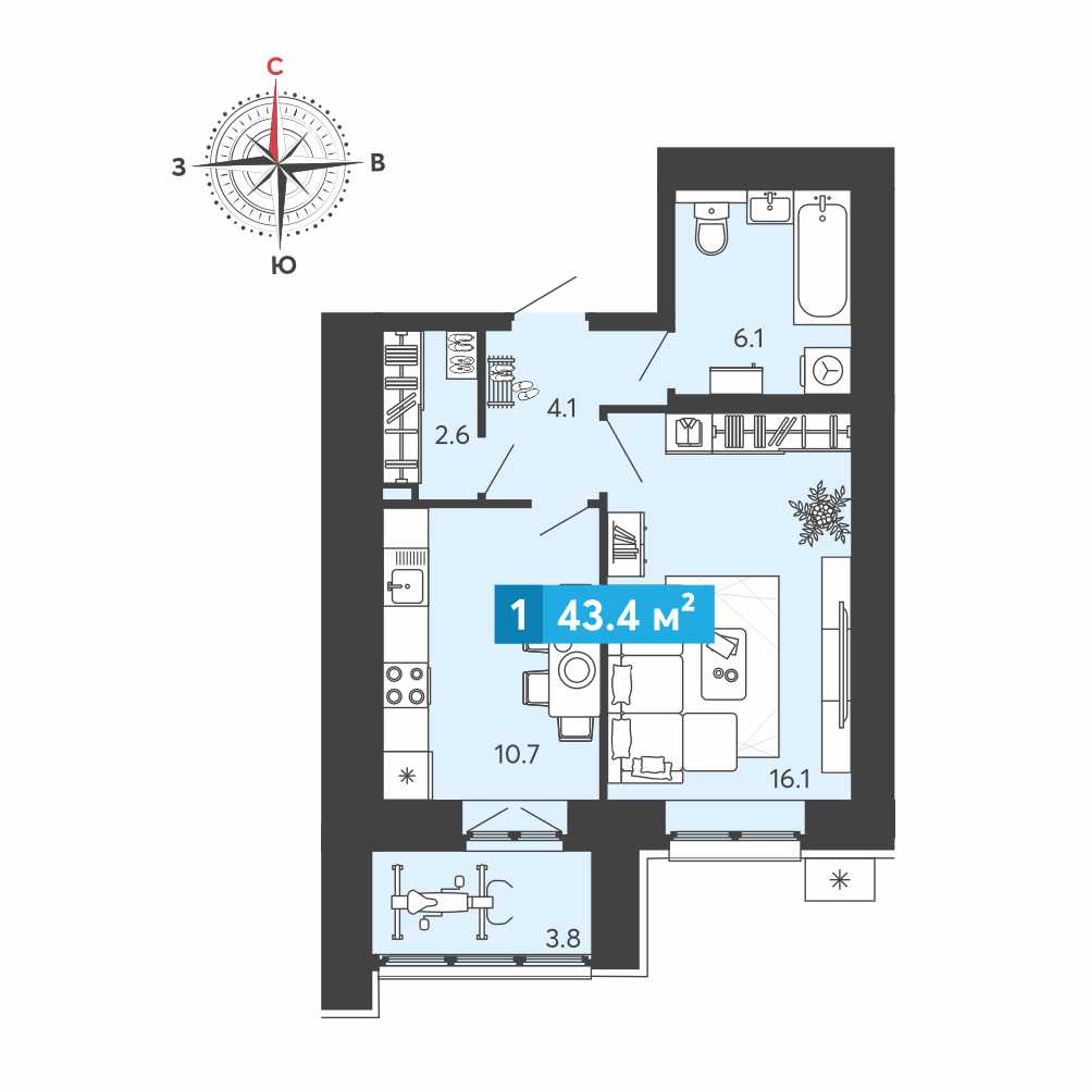Площадь: 43 м²
