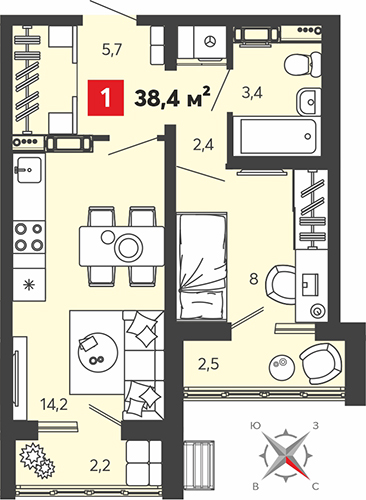 Площадь: 38 м²