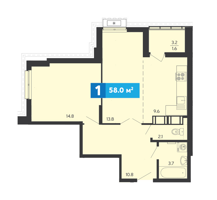 Площадь: 58 м²