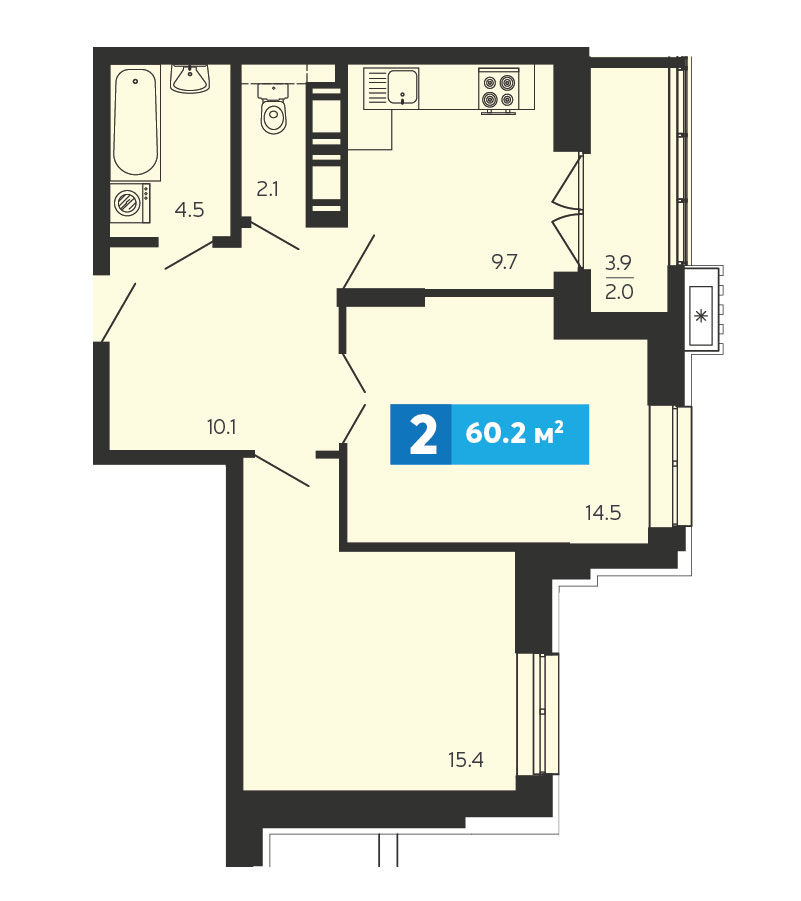 Площадь: 61 м²